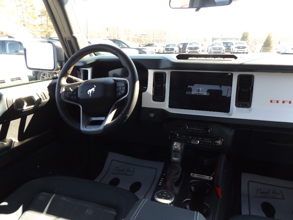 Enough room to carry all your cargo, passengers and equipment on a long road trip. Offering a ride height that is above most other vehicles, this 1/2 ton suv has great visibility on the road. Anti-lock brakes will help you stop in an emergency. This model is equipped with all wheel drive. This 1/2 ton suv comes equipped with Android Auto for seamless smartphone integration on the road. Apple CarPlay: Seamless smartphone integration for this unit - stay connected and entertained on the go! This model has an automatic transmission. Protect it from unwanted accidents with a cutting edge backup camera system. This 1/2 ton suv is painted with a sleek and sophisticated black color. Maintaining a stable interior temperature in this model is easy with the climate control system. This 2025 Ford Bronco warns of approaching vehicles with Cross-Traffic Alert. This vehicle features cruise control for long trips. Electronic Stability Control is one of many advanced safety features on this unit. The vehicle has a V6, 2.7L high output engine. Enjoy the tried and true gasoline engine in this Ford Bronco. This 2025 Ford Bronco features a hands-free Bluetooth phone system. Keep your hands warm all winter with a heated steering wheel in the Ford Bronco . You'll never again be lost in a crowded city or a country region with the navigation system on this 1/2 ton suv. An off-road package is equipped on the Ford Bronco. Never get into a cold vehicle again with the remote start feature on this model. The Ford Bronco is equipped with the latest generation of XM/Sirius Radio.