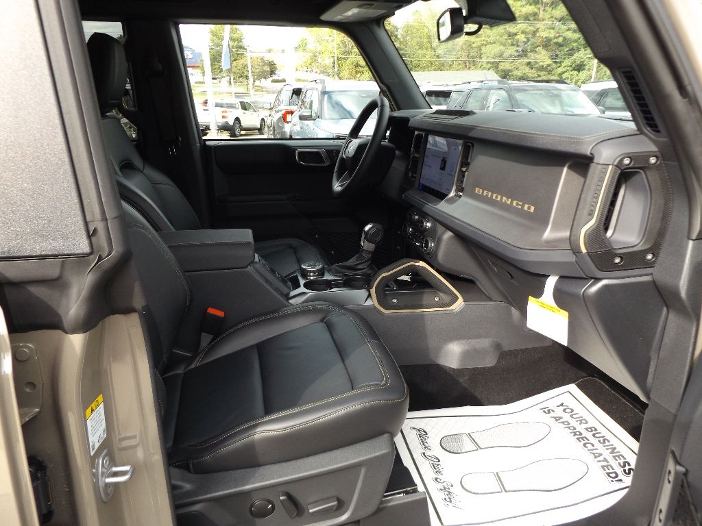 Equipment Group 334A Lux Package: Rear Parking Sensors; Power Outlet - Back Side of Center Floor Console; Dual Smart Charging USB Ports; Front Row Heated Seats; Driver and Front Passenger Illuminated Sliding Visor Vanity Mirrors; Evasive Steering Assist; Adaptive Cruise Control; Information on Demand Panel; B&O Sound System by Bang and Olufsen; Dual-Zone Electronic Automatic Temperature Control; Connected Navigation; Front Parking Sensors; 360-Degree Camera; Ambient Footwell Lighting; Universal Garage Door Opener; Remote Start System; 2-Door Intelligent Access with Lock/unlock; Sideview Mirrors Ford Co-Pilot360: Auto High-Beam Headlamps; Rear View Camera; Pre-Collision Assist with Automatic Emergency Braking; Blind Spot Information System (BLIS); Lane-Keeping System Sasquatch Package: 17 Carbonized Gray Painted Aluminum Wheels; High Clearance Fender Flares; High Clearance Suspension; 4.7 Final Drive Ratio; LT315/70R17 Rugged-Terrain Tires; Position-Sensitive Bilstein Shock Absorbers Ford Integrated Tether System (FITS) Accessory Package: Bronco-Branded Console Cupholder Body Color-Painted Hard Top Leather-Trimmed/vinyl Bucket Seats HOSS 3.0 with FOX Internal Bypass Dampers Ford Performance Heavy-Duty Modular Front Bumper Trailer Tow Package Hard Top Sound Deadening Headliner Door Storage Bags Marsh Gray **Equipment listed is based on original vehicle build and subject to change. Please confirm the accuracy of the included equipment by calling the dealer prior to purchase.**