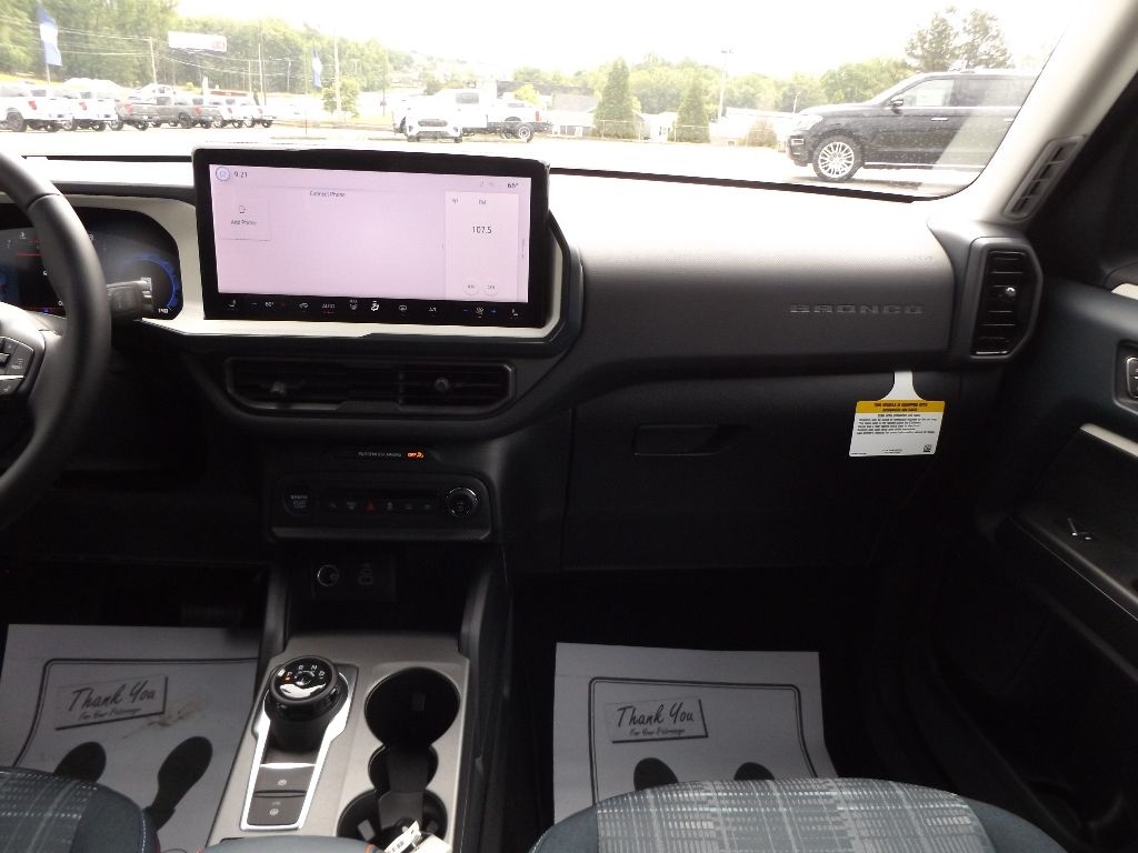 This 2025 Ford Bronco Sport has four wheel drive capabilities. This model has auto-adjust speed for safe following. This mid-size suv offers Android Auto for seamless smartphone integration. The vehicle offers Apple CarPlay for seamless connectivity. This Ford Bronco Sport keeps you comfortable with Auto Climate. The high efficiency automatic transmission shifts smoothly and allows you to relax while driving. See what's behind you with the back up camera on this Ford Bronco Sport. Set the temperature exactly where you are most comfortable in this 2025 Ford Bronco Sport . The fan speed and temperature will automatically adjust to maintain your preferred zone climate. This unit features cruise control for long trips. The Electronic Stability Control will keep you on your intended path. This unit has a 3 Cyl, 1.5L high output engine. The fog lights cut through the weather so you can see what's ahead. It is equipped with a gasoline engine. This model emanates grace with its stylish gray exterior. The vehicle features a hands-free Bluetooth phone system. The spacious cabin accommodates your family and friends in comfort. Take it to the mountains or the beach. this model can handle it all. The rear parking assist technology on the Ford Bronco Sport will put you at ease when reversing. The system alerts you as you get closer to an obstruction.