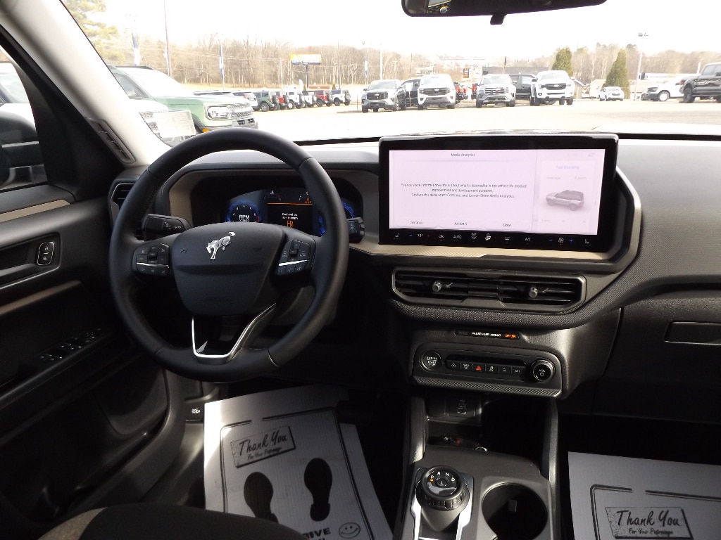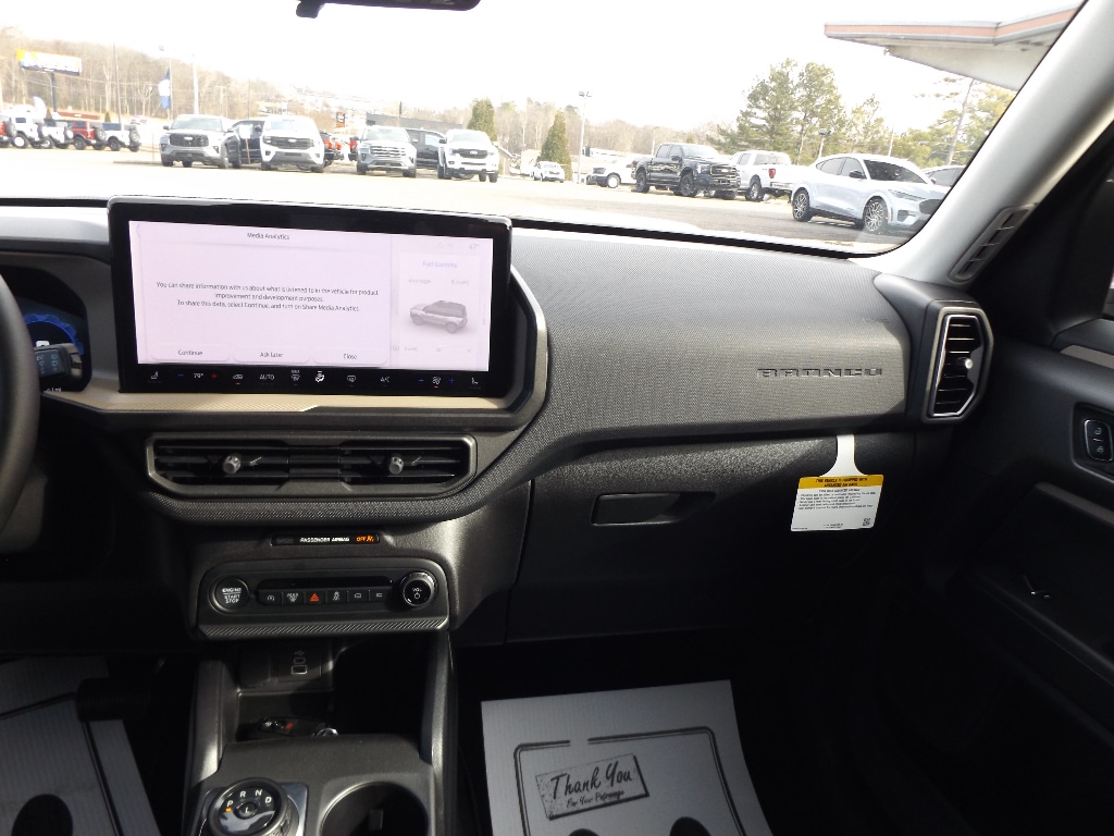 The vehicle has four wheel drive capabilities. This model has automated speed control that adjusts to maintain a safe following distance, enhancing highway driving convenience. This model offers Android Auto for seamless smartphone integration. Apple CarPlay: Seamless smartphone integration for it - stay connected and entertained on the go! The Ford Bronco Sport offers Automatic Climate Control for personalized comfort. The high efficiency automatic transmission shifts smoothly and allows you to relax while driving. See what's behind you with the back up camera on the vehicle. This vehicle has an elegant black exterior finish. Set the temperature exactly where you are most comfortable in this model. The fan speed and temperature will automatically adjust to maintain your preferred zone climate. This model features cruise control for long trips. Electronic Stability Control is one of many advanced safety features on this 2025 Ford Bronco Sport . This 2025 Ford Bronco Sport has a 3 Cyl, 1.5L high output engine. This mid-size suv has fog lights for all weather conditions. Enjoy the tried and true gasoline engine in the Ford Bronco Sport. This 2025 Ford Bronco Sport features a hands-free Bluetooth phone system. This mid-sized SUV is perfect for your next adventure. The rear parking assist technology on the vehicle will put you at ease when reversing. The system alerts you as you get closer to an obstruction. Start this 2025 Ford Bronco Sport from inside with remote start.