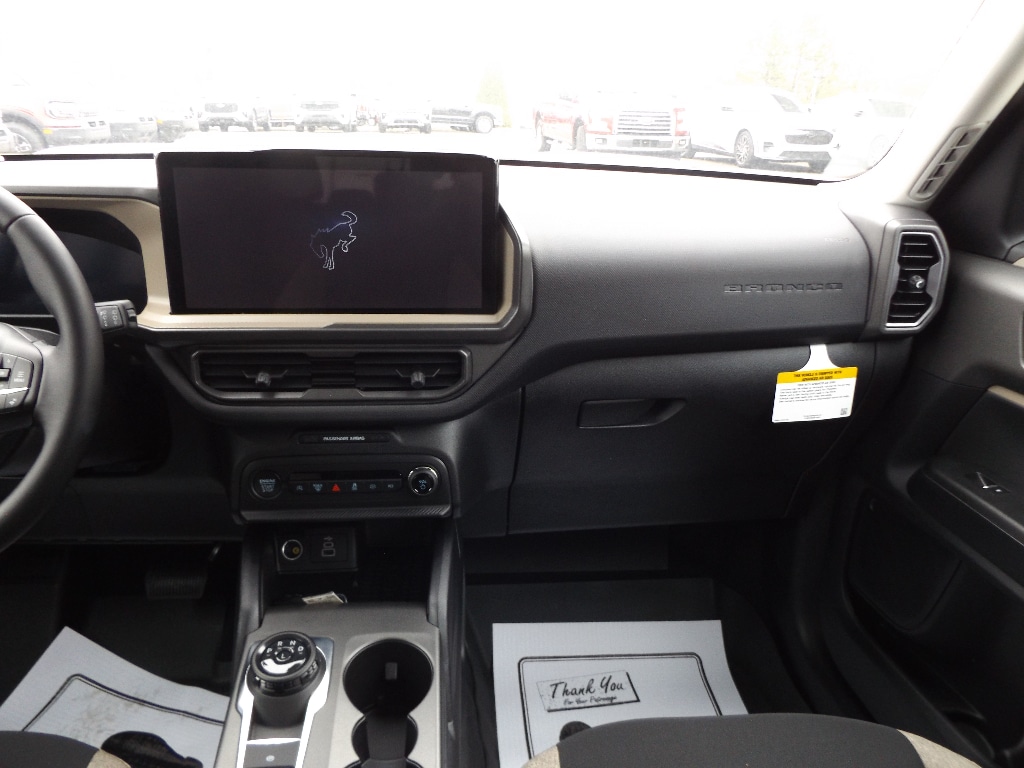 When you encounter slick or muddy roads, you can engage the four wheel drive on this Ford Bronco Sport and drive with confidence. This 2025 Ford Bronco Sport has auto-adjust speed for safe following. This model comes equipped with Android Auto for seamless smartphone integration on the road. This Ford Bronco Sport offers Apple CarPlay for seamless connectivity. This Ford Bronco Sport offers Automatic Climate Control for personalized comfort. The high efficiency automatic transmission shifts smoothly and allows you to relax while driving. See what's behind you with the back up camera on this unit. Set the temperature exactly where you are most comfortable in this unit. The fan speed and temperature will automatically adjust to maintain your preferred zone climate. Easily set your speed in it with a state of the art cruise control system. Increase or decrease velocity with the touch of a button. Electronic Stability Control is one of many advanced safety features on this vehicle. This mid-size suv has a 3 Cyl, 1.5L high output engine. The vehicle has fog lights for all weather conditions. Enjoy the tried and true gasoline engine in the Ford Bronco Sport. Bluetooth technology is built into this vehicle, keeping your hands on the steering wheel and your focus on the road. This mid-sized SUV is perfect for your next adventure. The rear parking assist technology on this unit will put you at ease when reversing. The system alerts you as you get closer to an obstruction. Never get into a cold vehicle again with the remote start feature on this 2025 Ford Bronco Sport . This vehicle features elegant lines colored with a long lasting sand colored finish. This model is equipped with the latest generation of XM/Sirius Radio.