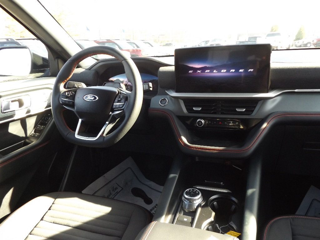 Carry lots of cargo while your passengers are comfortable. The vehicle has automated speed control that adjusts to maintain a safe following distance, enhancing highway driving convenience. This Ford Explorer offers Android Auto for seamless smartphone integration. Apple CarPlay: Seamless smartphone integration for the vehicle - stay connected and entertained on the go! This 1/2 ton suv has an automatic transmission. Protect this 1/2 ton suv from unwanted accidents with a cutting edge backup camera system. Maintaining a stable interior temperature in this model is easy with the climate control system. It features cruise control for long trips. The vehicle has a 4 Cyl, 2.3L high output engine. Enjoy the tried and true gasoline engine in this vehicle. This 1/2 ton suv emanates grace with its stylish gray exterior. This Ford Explorer features a hands-free Bluetooth phone system. This unit is pure luxury with a heated steering wheel. The leather seats in this 2025 Ford Explorer are a must for buyers looking for comfort, durability, and style. Help alleviate lower back pain with the driver seat lumbar support in this unit. The installed navigation system will keep you on the right path. Enjoy the convenience of the power liftgate on this model. This Ford Explorer is rear wheel drive. Start the Ford Explorer from inside with remote start.