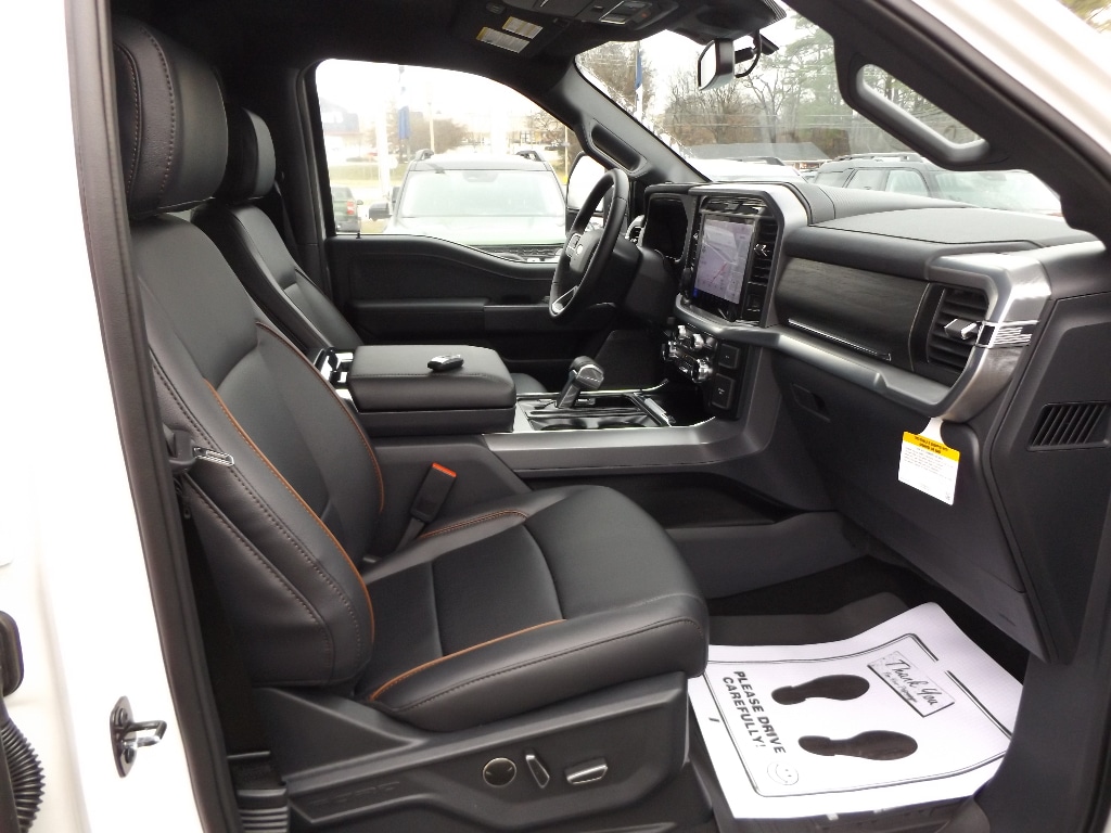 Half ton trucks are the most functional trucks for all purposes. The Ford F-150 has four wheel drive capabilities. Anti-lock brakes are standard on this model. This vehicle has automated speed control that adjusts to maintain a safe following distance, enhancing highway driving convenience. The Ford F-150 comes equipped with Android Auto for seamless smartphone integration on the road. This 2025 Ford F-150 offers Apple CarPlay for seamless connectivity. The high efficiency automatic transmission shifts smoothly and allows you to relax while driving. See what's behind you with the back up camera on this 2025 Ford F-150 . Maintaining a stable interior temperature in this unit is easy with the climate control system. This vehicle warns of approaching vehicles with Cross-Traffic Alert. Easily set your speed in the Ford F-150 with a state of the art cruise control system. Increase or decrease velocity with the touch of a button. This Ford F-150 has a V6, 3.5L high output engine. This model features a hands-free Bluetooth phone system. Heated seats for those cold winter days are included in this 1/2 ton pickup. Keep your hands warm all winter with a heated steering wheel in this vehicle . The leather seats in it are a must for buyers looking for comfort, durability, and style. With the adjustable lumbar support in this 1/2 ton pickup your back will love you. You'll never again be lost in a crowded city or a country region with the navigation system on the vehicle. An off-road package is installed on this model so you are ready for your four-wheeling best. Start this 1/2 ton pickup from inside with remote start. The premium quality running boards make it easier to get in and out of the vehicle and give it a nice look too. This vehicle is built for driving comfort with a telescoping wheel. A trailer braking system is already installed on it. This Ford F-150 embodies class and sophistication with its refined white exterior.