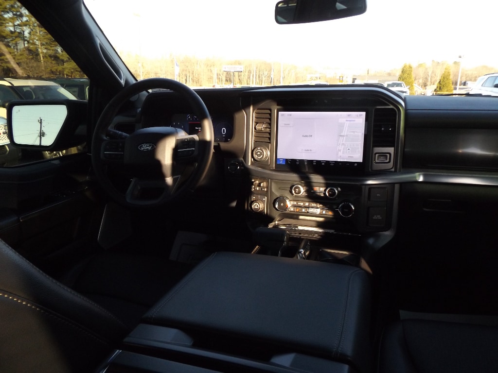 Big enough to tow or haul, this 1/2 ton pickup has the space, power and durability for anyone. This 2025 Ford F-150 has four wheel drive capabilities. Anti-lock brakes will help you stop in an emergency. This vehicle has auto-adjust speed for safe following. This vehicle offers Android Auto for seamless smartphone integration. This 1/2 ton pickup offers Apple CarPlay for seamless connectivity. This Ford F-150 has an automatic transmission. See what's behind you with the back up camera on this model. This model is painted with a sleek and sophisticated black color. Set the temperature exactly where you are most comfortable in this 2025 Ford F-150 . The fan speed and temperature will automatically adjust to maintain your preferred zone climate. This unit warns of approaching vehicles with Cross-Traffic Alert. The vehicle features cruise control for long trips. This model has a V6, 3.5L high output engine. Enjoy the tried and true gasoline engine in it. This vehicle features a hands-free Bluetooth phone system. Heated seats for those cold winter days are included in it. Keep your hands warm all winter with a heated steering wheel in this 2025 Ford F-150 . The leather seats in this 2025 Ford F-150 are a must for buyers looking for comfort, durability, and style. With the adjustable lumbar support in the Ford F-150 your back will love you. You'll never again be lost in a crowded city or a country region with the navigation system on the Ford F-150. An off-road package is equipped on this 1/2 ton pickup. This 1/2 ton pickup comes with running boards already installed. A trailer braking system is already installed on the Ford F-150.