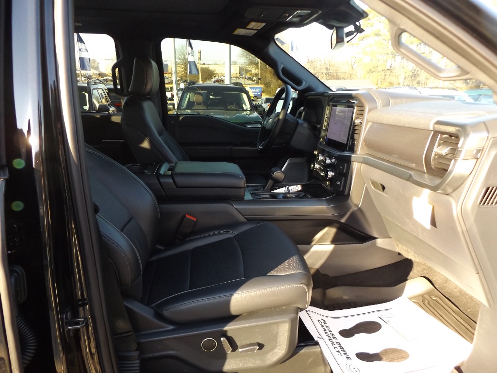 Lariat Black Appearance Package: Black Grille; ActiveX Seating Material Bucket Seats; Black Exterior Badging; Gray Box Side Decal; Body-Color Front and Rear Bumpers; Body-Color Skull Caps and Door Handles; Black Taillamp Bezels; Matte Black Tailgate F-150 Decal; Dark Interior Appliques FX4 Off-Road Package: Tray Style Floor Liner Without Carpet Mats; Off-Road Tuned Front Shock Absorbers; Skid Plates; Monotube Rear Shocks; Rock Crawl Mode; 4x4 FX4 Off-Road Bodyside Decal; Hill Descent Control Bed Utility Package: 4 Pickup Box Tie-Down Plates; 6 Extended Running Boards; LED Box Lighting; Pro Access Tailgate; Power Tailgate Equipment Group 502A High: Ambient Lighting - Ice Blue Color Only; Electronic 10-Speed Automatic Transmission; 7 100 lbs Payload Package GVWR; B&O Unleashed Sound System by Bang & Olufsen Radio; 2nd Row Heated Seats; 6 Extended Angular Bright Anodized Step Bar; Power-Sliding Rear Window; Heads-Up Display; Illuminated Driver and Passenger Visors; 275/60R20 All-Terrain Tires Mobile Office Package: Wireless Charging; Partitioned Lockable Rear Storage; Console Worksurface Tow/haul Package: Integrated Trailer Brake Controller Twin Panel Moonroof BlueCruise Equipped (1year Plan) Max Tow Electronic Locking with 3.55 Axle Ratio Skid Plates **Equipment listed is based on original vehicle build and subject to change. Please confirm the accuracy of the included equipment by calling the dealer prior to purchase.**