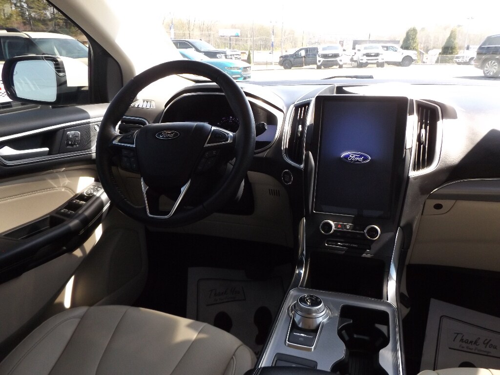This vehicle has auto-adjust speed for safe following. This model is equipped with all wheel drive. It comes equipped with Android Auto for seamless smartphone integration on the road. Apple CarPlay: Seamless smartphone integration for this unit - stay connected and entertained on the go! This vehicle has an automatic transmission. See what's behind you with the back up camera on the vehicle. This 2021 Ford Edge has a clean CARFAX vehicle history report. Maintaining a stable interior temperature in this mid-size suv is easy with the climate control system. It warns of approaching vehicles with Cross-Traffic Alert. This vehicle features cruise control for long trips. The Electronic Stability Control will keep you on your intended path. It has a 4 Cyl, 2.0L high output engine. This mid-size suv is equipped with a gasoline engine. This model features a hands-free Bluetooth phone system. Keep your hands warm all winter with a heated steering wheel in it . The leather seats in this mid-size suv are a must for buyers looking for comfort, durability, and style. With the adjustable lumbar support in this 2021 Ford Edge your back will love you. This mid-sized SUV is perfect for your next adventure. You'll never again be lost in a crowded city or a country region with the navigation system on this unit. Load groceries and much more with ease into it thanks to the power liftgate. This Ford Edge has an adjustable telescoping wheel that allows you to achieve a perfect fit for your driving comfort. This vehicle shines with clean polished lines coated with an elegant white finish.