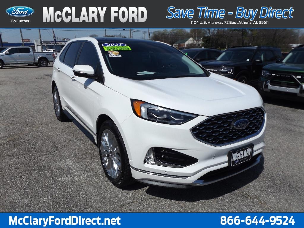 Located in Athens, AL, this pre-owned 2021 Ford Edge Titanium is competitively priced â" we offer the best price in the area for this model and condition. Whether you need a versatile family vehicle, an efficient commuter with premium tech, or a capable AWD SUV for seasonal needs, this Ford Edge delivers. Schedule a test drive today and experience the blend of performance, safety, and modern features that makes this 2021 Ford Edge Titanium a smart buy in Athens, Alabama. Financing options available.